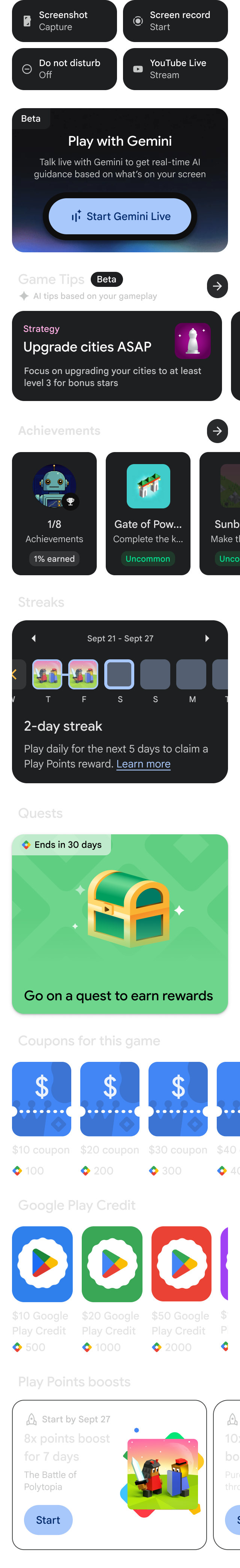 Hjálpargluggi Play-leikja með Raunspjalli við Gemini er nýr félagi í leikjaspilun sem veitir þér auðveldan aðgang að tölfræðinni þinni, afrekum og ráðleggingum án þess að fara úr leiknum. Þú getur einnig fengið spjallleiðbeiningar í rauntíma frá Raunspjalli við Gemini meðan þú spilar. Hjálparglugginn er aðeins í boði meðan þú spilar leiki sem sóttir eru á Play, og verður í boði í snjalltækjum innan tíðar.